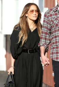 25 квітня зірки були помічені у Каліфорнії: Аффлек буквально сяяв від щастя поруч із Джей Ло. Зірка одягла просту чорну сукню-туніку, яку елегантно підперезала на талії ременем. Образ доповнили білі кеди, сумка Hermes та окуляри-авіатори. Зазначимо, що Лопес красиво «жонглює» образами.